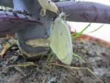 鉢植えのキャベツで育ったモンシロチョウの幼虫が成虫となり、モンシロチョウが二羽巣...