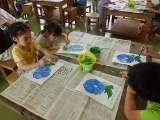 生活科で育てているあさがお。咲いてほしいなと思う色を思い浮かべながら、絵の具で...
