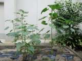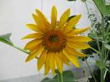 今日の中庭の花だんの様子です。 ヒマワリの花が3つさいていました。見ている...
