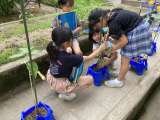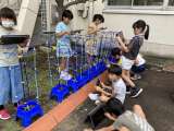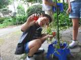 育てている野菜が次々と実っています。休み時間になると、中庭に出て、野菜の水やり...