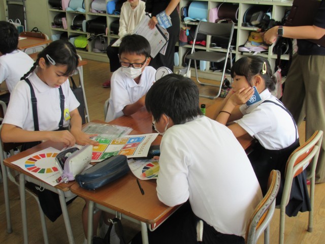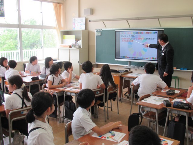 今日は、総合的な学習の時間に外部講師をお招きし、SDGsをテーマに出前講座を行っていただきました。