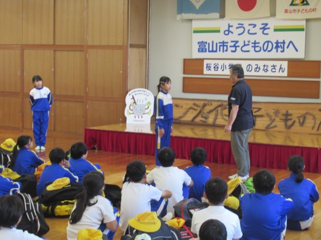 代表児童が校長先生や所の方に、宿泊学習を通して成長したいことなどを伝えました。