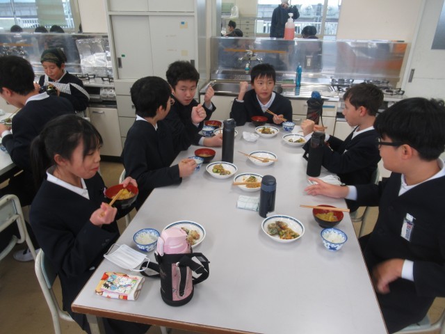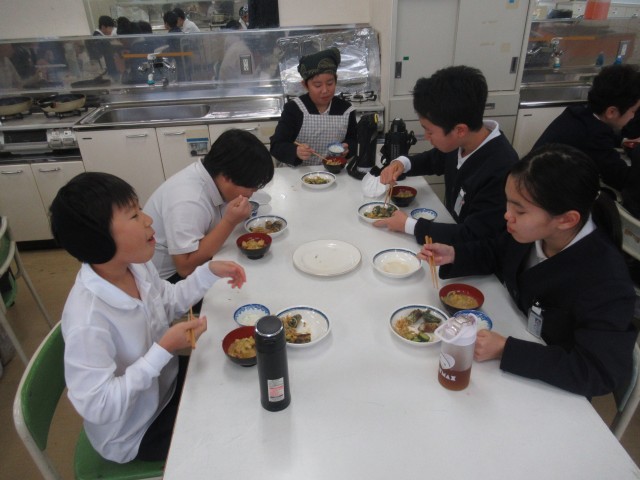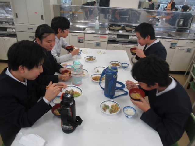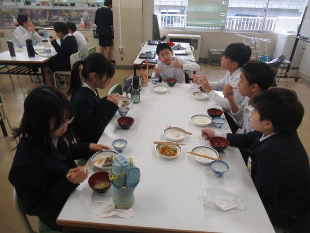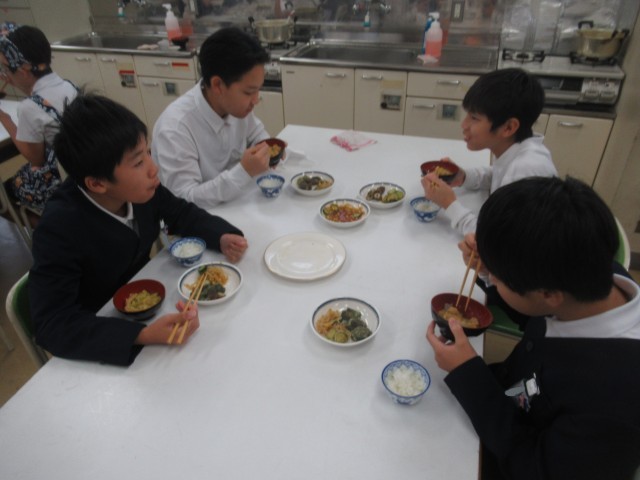 ちくわの磯辺焼き、酢の物(もやし、きゅうり、コーン)、みそ汁(さつまいも、大根、油揚げ)の3品をおいしくつくることができました。