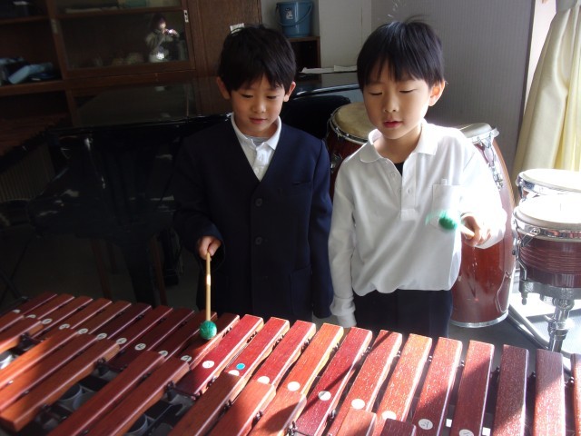 音楽科では、鍵盤ハーモニカに合わせて、鉄琴や木琴で「きらきら星」を演奏しました。初めて触る子も多くドキドキした様子でしたが、次々と交代しながらみんなで仲良く演奏しました。