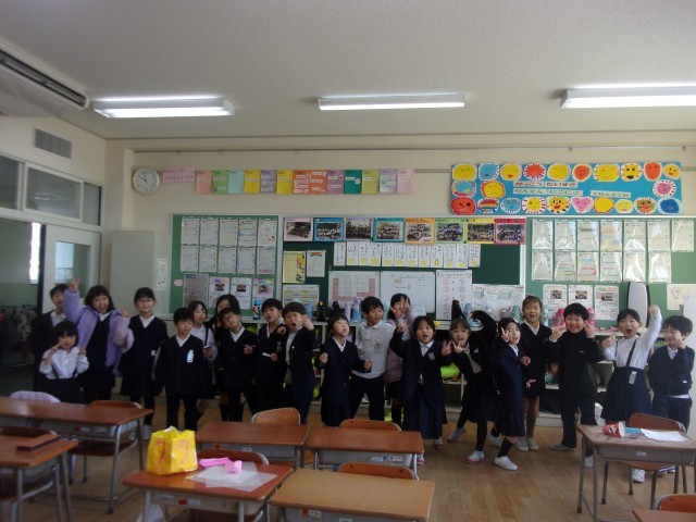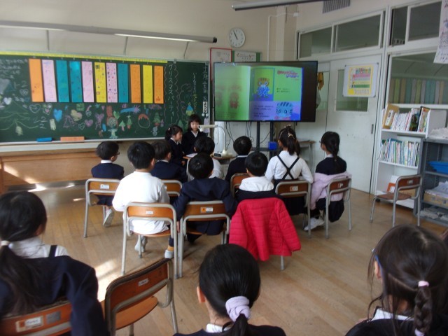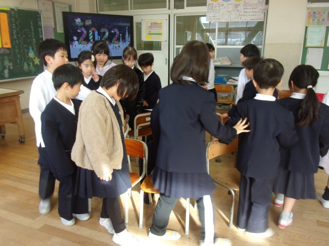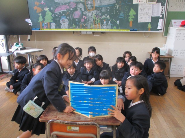 1年生は、それぞれのクラスでお楽しみ集会をし、自分たちで企画した出し物をみんなで楽しみました。