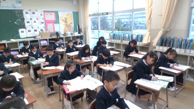 冬休みが明け、書初大会がありました。終わった後は、「もっと書きたかった」「練習のときはうまく書けたのに」「これまでで一番うまく書けた」など、様々な声が聞こえてきました。後悔する声が多く聞かれましたが、みんな2学期の終わりよりも上達しており、冬休み中に練習を重ねたことがよく分かりました。