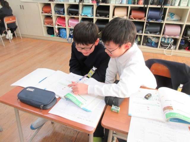 国語科で自分だけの詩集を作ったり、算数科の面積の学習を友達と協力したり、教え合ったりしながら、楽しんで取り組んでいます。