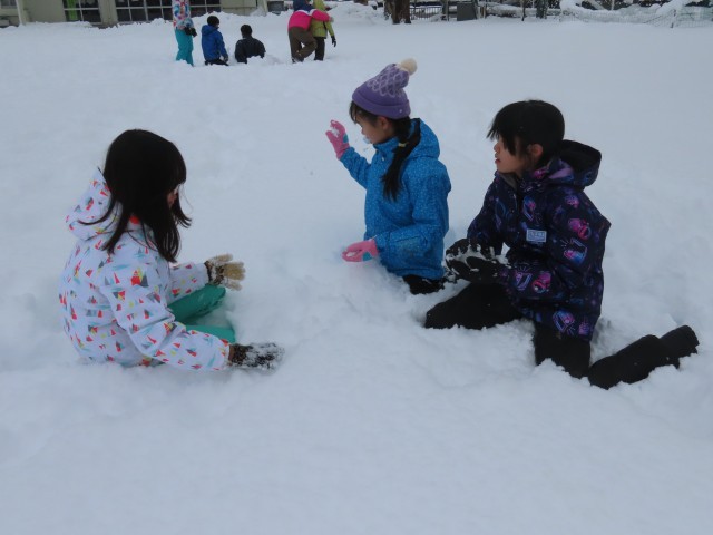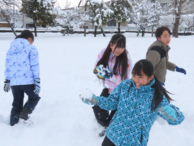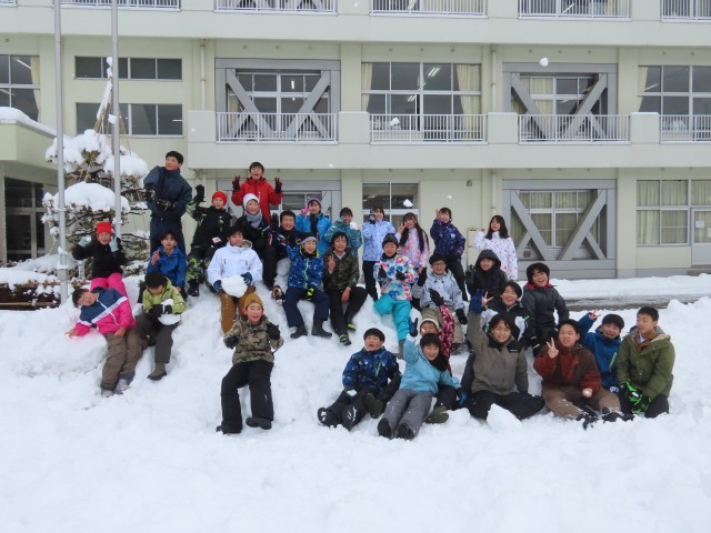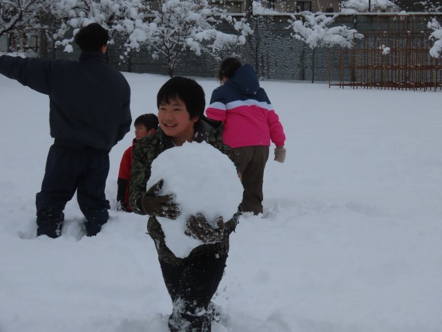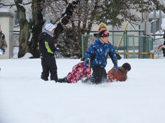 2時間目に、グラウンドに積もった雪の中、楽しく、激しく遊びました。