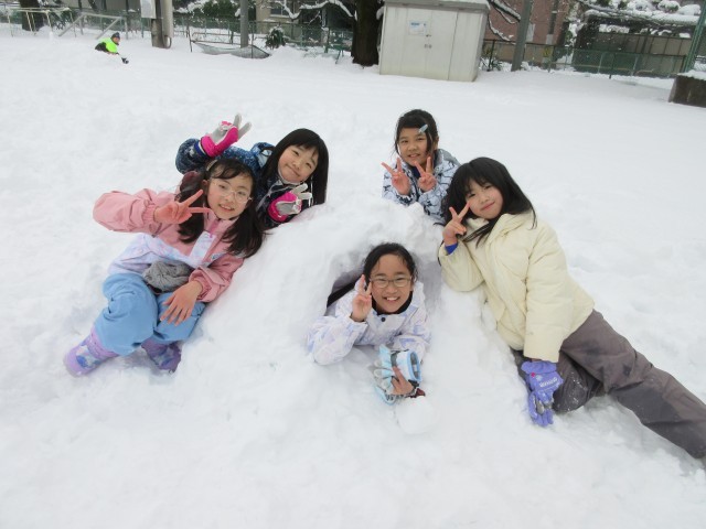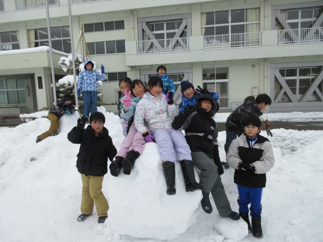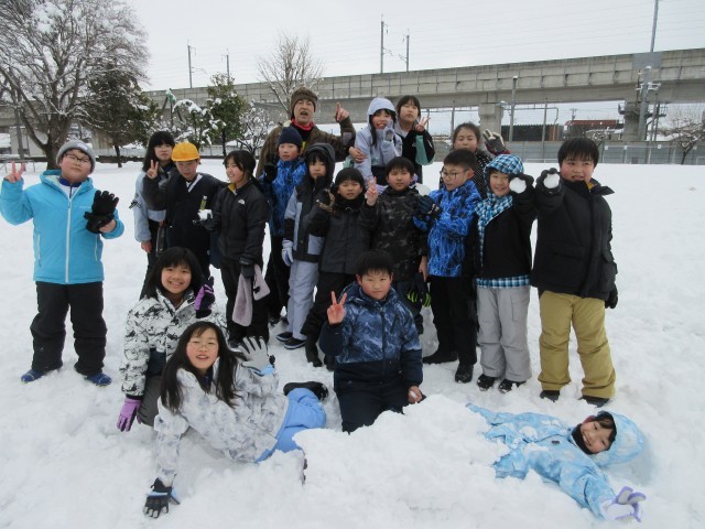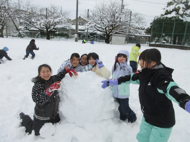 4年生は、他の学年が先に雪遊びをしていたので、新雪がなくなると心配していました。5時間目に外に出たときには、まだまだ雪はたくさん残っていて、大きな雪玉を作ったり、雪合戦をしたりして思いっきり楽しみました。