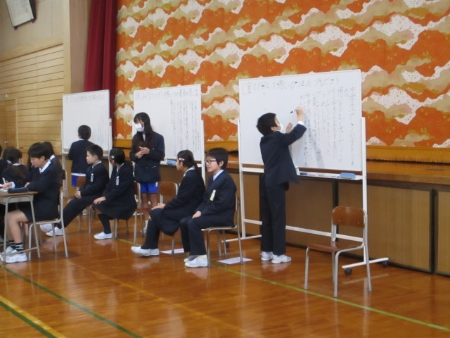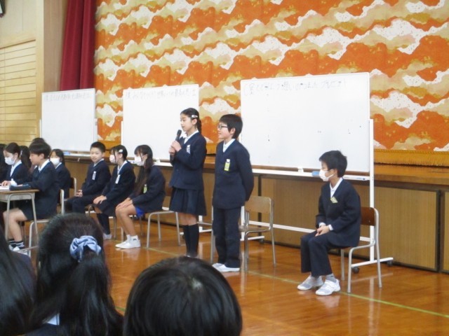 今日は、在校生会議を開き、卒業を祝う週間の目当てを決めました。司会や書記等、それぞれの役割を全うするとともに、全校の意見をまとめようと試行錯誤する姿が見られました。今日の会議は、子供たちにとってよい学び、経験となりました。
