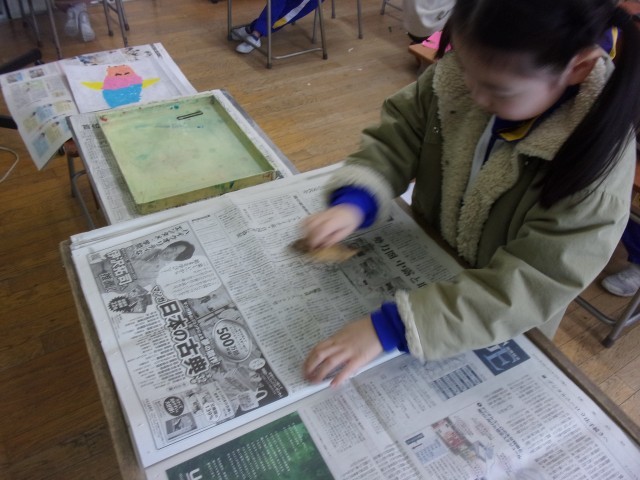 2月3日(火)カラフル版画 1年生