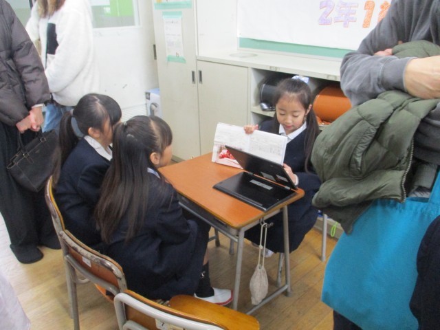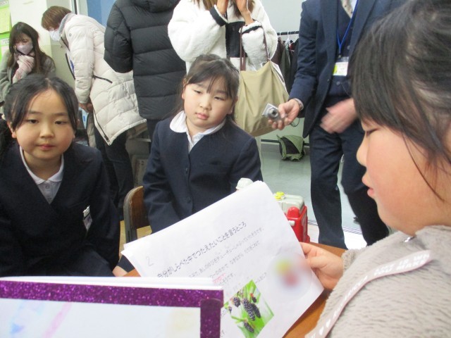 自分探検をして、生まれたときのことや、名前の由来、成長したこと等を調べたり、書いたりしてアルバムにまとめたものを学習参観日に発表しました。子供たちは緊張しながらも、これまでまとめてきたものを精一杯発表しました。
