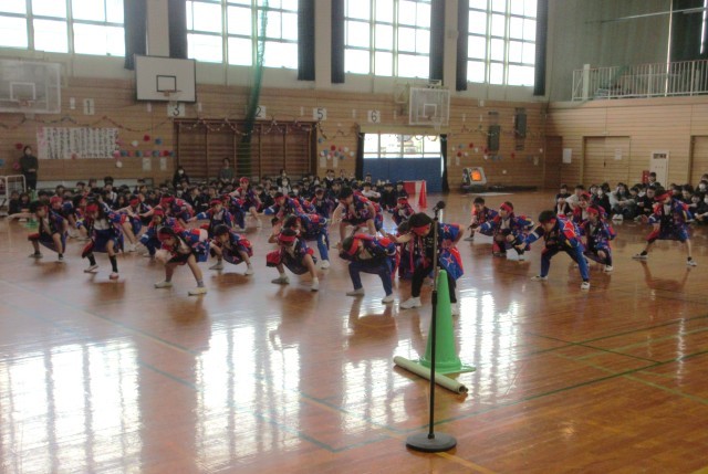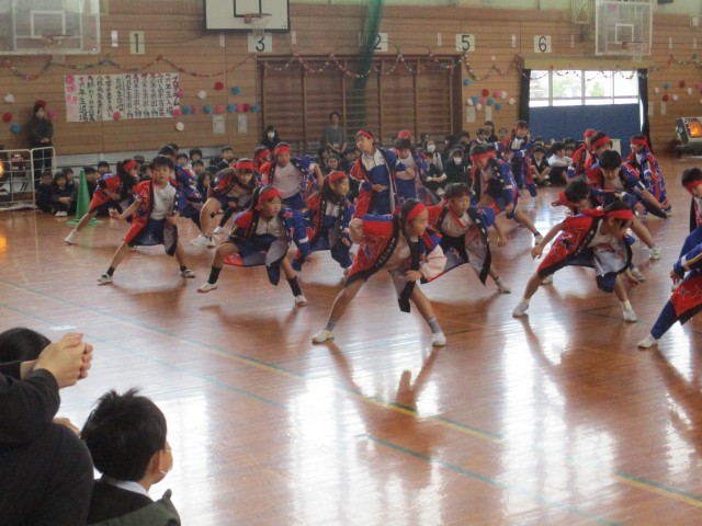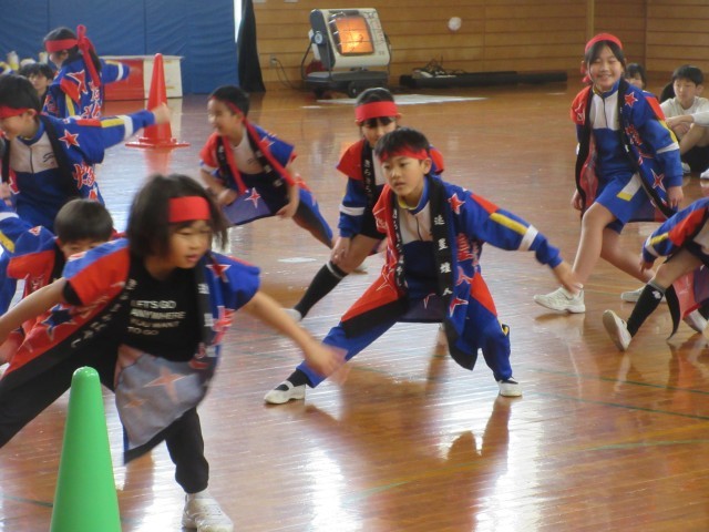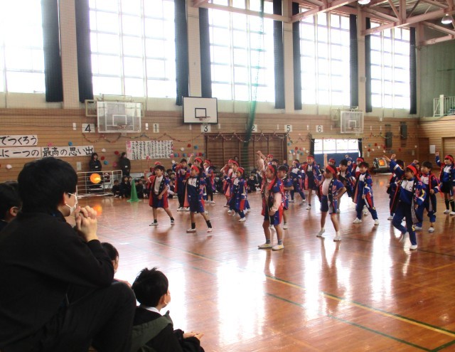 6年生の卒業を祝う会の出し物で、2年生では「ソーラン節」を踊りました。6年生に喜んでもらおうと勇ましく、元気に踊りました。