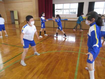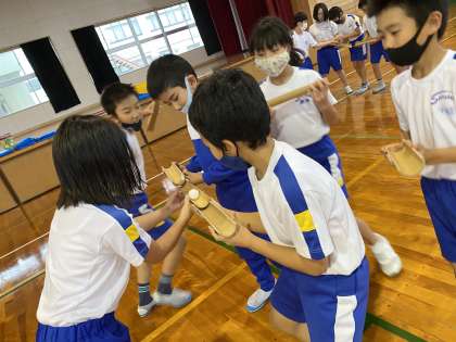 立山青少年自然の家の職員の方に、「立山ジョイフレンド」の出前活動をしていただきました。様々なゲームを通して、友達と協力し合い、お互いのよさを見つけることを目的としています。子供たちは汗だくになりながら、友達と関わり楽しんでいました。