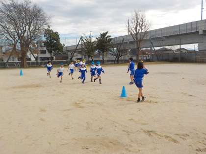 今日の体育の時間は、青空でしたが、気温は低めでした。鉄棒運動をした後、身体ほぐしの一つとして、じゃんけんをして勝ったら、そのままコーンを回ってバトンタッチ。負けたら、同じチームのメンバーに「負けたよ」と、叫び、みんなでコーンを回った後、再度、じゃんけんにチャレンジするというリレー形式の運動をしました。じゃんけん担当者が強い場合、何回も走らなくてはならず、運を天に任せての運動でした。たくさん走りましたが、じゃんけんのドキドキが面白かったと、子供たちには、意外と好評でした。
