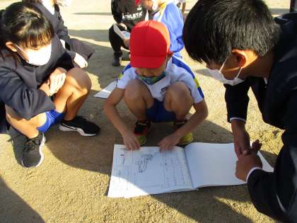 自分のお店のおすすめの自動車について、なかよし班の6年生に紹介しました。「緊張する〜」とドキドキしながらも、一生懸命に伝えようとする1年生に対する6年生の優しいまなざしが印象的でした。6年生から「1年生なのに、車屋さんの店長さんってすごいね!」「上手に書けたね」と褒めてもらえて、とってもうれしそうな1年生でした。
