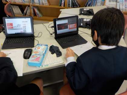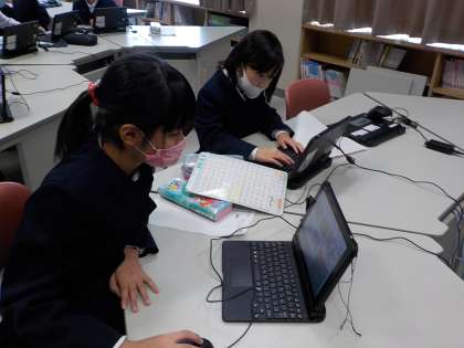 社会科の時間、昔の道具を調べてきた子供たちは、進化してきた道具について、進化の過程をまとめる学習に取り組みました。ここでも、コンピュータは活躍しました。インターネットで調べると、道具の進化が写真付きで出ているものがありました。先日、直接見てきた道具と合わせて、子供たちは、より理解が深まったようです。