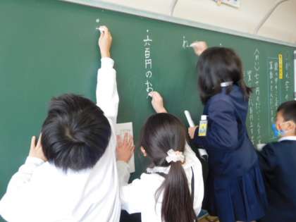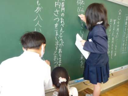 今日の国語では、かんじのひろばをしました。今日の課題は、教科書から出てきた漢字を使って、算数の問題を作ろうということで、漢字を使いながら、算数の問題を一生懸命作っていました。みんな、おもしろい問題を作っていて発想豊かでした。
