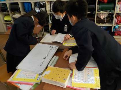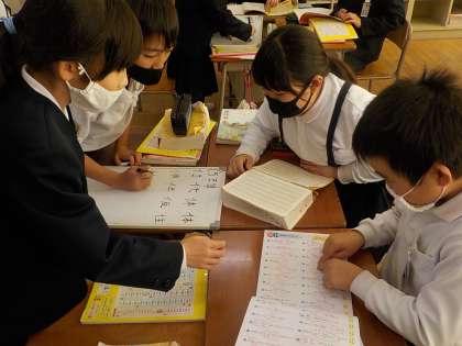 グループ対抗で「きへんの漢字」「にんべんの漢字」等を、2分間で、いくつ見つけられるかを競いました。接戦となり、1個の差で6班が一位でした。子供たちからは、「2分間が終わってから、ああ、あの漢字もだった」と、悔しそうな声も聞かれました。「先生、また、やろうよ。次はもっとたくさん見つけるから」と、リベンジを誓う子供もいました。