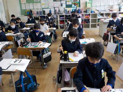 3年 書写 毛筆での「書き初め」に初挑戦