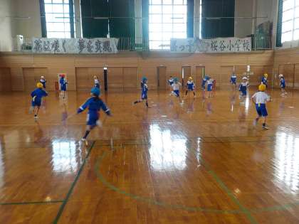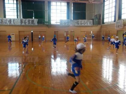 後半は、腰に付けるタグという装具を使っての、活動を行いました。次回からは、ボールを宝物に見立てて、敵を避けながらゴールに運ぶというゲーム形式の運動に取り組む予定です。寒くなってきましたが、たくさん身体を動かして、元気に冬を乗り切ろうと思います。