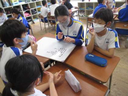 人権週間で運営委員会から紹介のあった、「あったか言葉大作戦」を4−1でもやってみました。ホワイトボードに心が温かくなる言葉を書き出し、自分の大事にしたい「あったか言葉」を紹介し合いました。4−1では、体育の時間に「がんばれ」「どんまい」という声がよく聞こえます。さらにそんな言葉が飛び交うクラスになってほしいです!