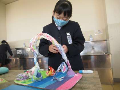 液体粘土で固めた立体が、思い通りに立ち上がらせることができたとき、とても嬉しそうでした。ダイナミックな作品に仕上がりました!細かい所は紙粘土やモールで形を丁寧に作り上げることができました。