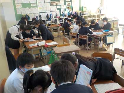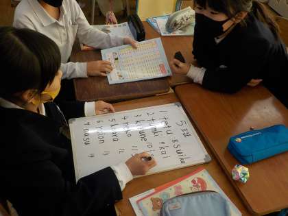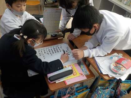 国語の時間、先日来、部首集めをしていましたが、今回はローマ字でのしりとりをグループ対抗で行いました。言葉は出るけど、ローマ字がぱっと思い出せないという事態も見られました。ちなみに、ローマ字しりとりは、学習係の発案です。係の子達は、ちゃんとできるのかな、みんな、楽しめるのかなと、不安にになり、相談を受けたので、国語の時間にやってみることにしたのです。意外に好評でした。ローマ字の習熟にもなるので、一石二鳥です。