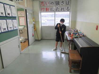 自主的に清掃に取り組む6年生たち。