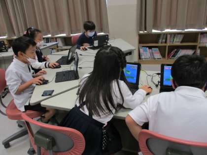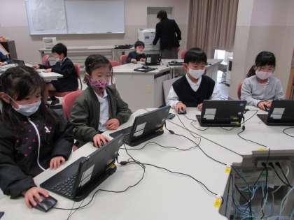 久しぶりにパソコンをしました。自分たちで電源を入れてパソコンを立ち上げ、マウス練習や計算ドリルに取り組みました。グループの友達と教え合って活動しています。