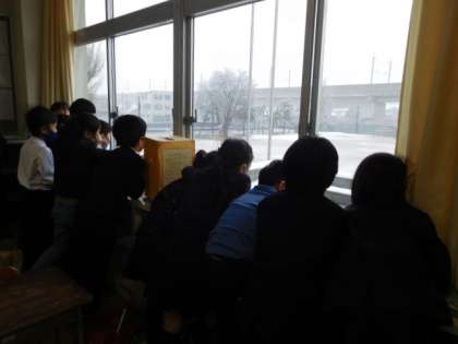 今日は、富山市で初めての雪が降り、みんな窓越しに近づいて「雪だ!」「大粒だ−!」と大喜びでした。暖かい格好で学校に来てくださいね。