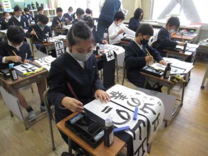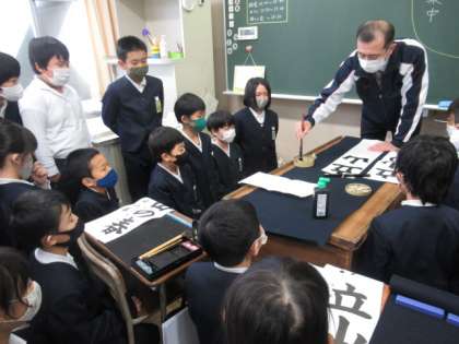 今年の書初は「立山の春」です。校長先生にお手本を見せていただいた後、1枚書いてみました。手本をよく見て、じっくり書いていた子供たちでした。これからの上達が楽しみです!