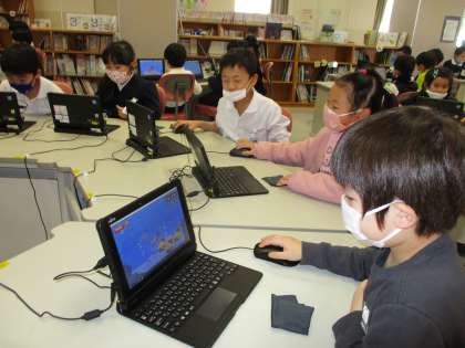 毎週パソコンの学習をしていることもあり、子供たちの手際がよくなってきました。アプリを開いてマウスタッチの練習と計算練習をしました。時間が来るまでみんな集中して、自分のやりたいものを選びながら、どんどん学習を進めていました。