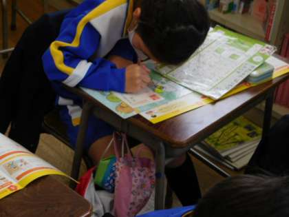 国語の時間では、年賀状を書きました。みんな、お家で下書きしてきたものを見ながら新年の始めに届くものということで、相手の人に文字で伝えようと丁寧に書いていました。自分でポストに入れて、新年始めに相手に届くと良いですね。