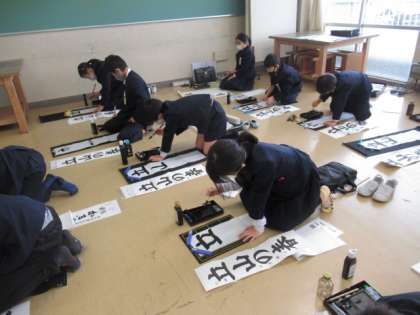 今日から、床で書初の練習を始めました。書いているときの教室は、どの子も集中してとても静かです。今日は、線の太さや字の大きさを意識して練習しました。