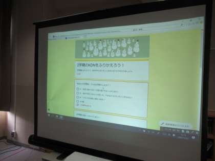 2学期の振り返りを、「Googleフォーム」というアンケート機能を使って行いました。学級目標の「KDN」についてそれぞれ達成度を考え、自分にぴったりな今年の漢字一文字を発表しました。アンケートを入力すると、全員の回答がすぐにグラフにまとめられ、2学期の伸びや、3学期に向けての課題も見つけることができました!