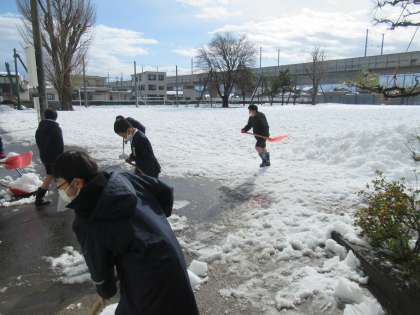 寒い中、下級生のために一生懸命雪かきをしてくれる6年生の背中がたくましく見えました。