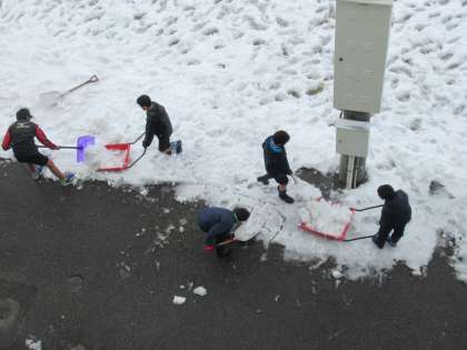 玄関付近には、せっせと雪かきをしている6年生の姿がありました。