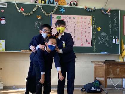 「3学期もがんばろう集会」をしました。それぞれの係が出し物を考え、盛り上げました!友達と話し合ったり、自分の意見を発表したりすることが上手になった4−1の2学期です。今日の集会でもクラスのみんなが楽しい気持ちになるように、どの子も工夫していました。
