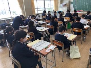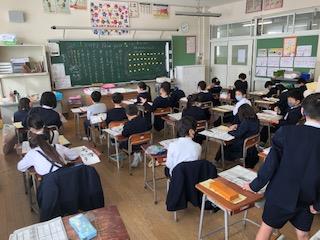 小学校生活2度目の校内書き初め大会の風景です。「はつ日」を堂々と慣れた手つきで書き上げていました。