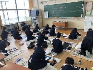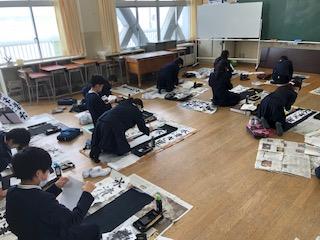 「水清き里」が今年の書き初め大会の課題でした。今年はいよいよ最上級生、しっとりと落ち着いて取り組む姿は流石だと思いました。