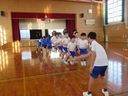 体育では、大縄とびに取り組んでいます。