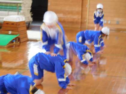 今日の体育では、子供たち同士で馬跳びをしました。手をしっかりついて跳ぶことを意識させ行いました。これからできるようになるまで粘り強く頑張りましょう!