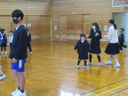 金曜日の朝は、1年生と6年生が一緒に体力づくりに取り組む時間です。