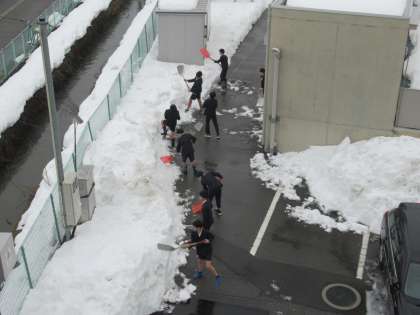 少し水分を含んだ雪をスコップで運ぶのは大変だったと思いますが、一生懸命取り組んでいました。