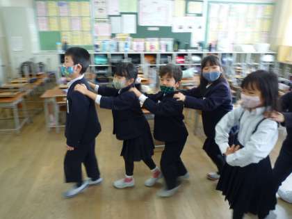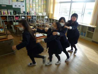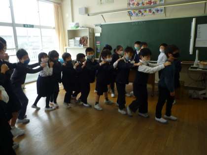 休み時間にお楽しみ係の人が集会を開いてくれました。じゃんけん列車をして、とても楽しい時間を過ごすことができました。