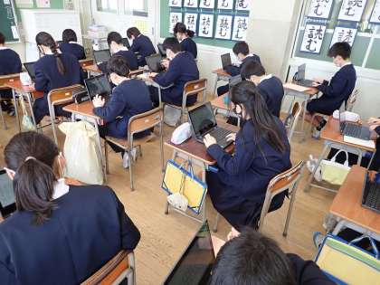 今日から、学習に一人一端末のパソコンを利用し始めました。みんなで意見を出し合ったり、振り返りに用いたりしました。少しずつ慣れるように、自由に扱えるようにしていきたいと思います。