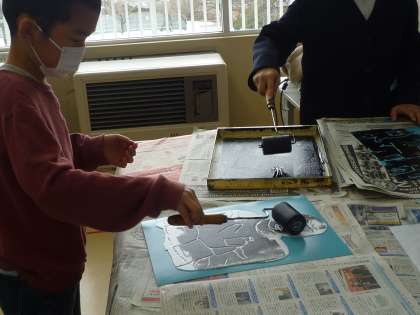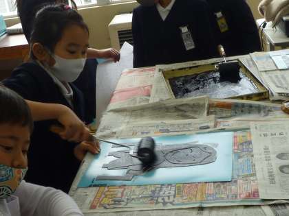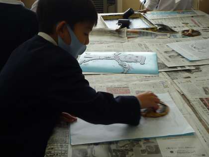 図工の学習では、「2年生でがんばったこと」をテーマに版画を作っています。