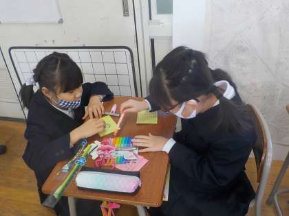 理科の学習では、これまで学習した、「風」、「ゴム」、「電気」、「磁石」の性質やはたらきを生かして、おもちゃを作る学習を行っています。どんな性質を使って、どんなおもちゃにしようか、子供たちはいろいろと試行錯誤しています。作ったおもちゃでどんな遊びができるのか楽しみです。