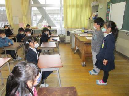今日の桜っ子タイムは、各クラスからの代表が集まって代表委員会が開かれました。学級の代表として、1年生ながらも他学年の前で発言する姿が見られ、頼もしく感じました。会議から戻った代表の二人は、会議の内容を1年生の仲間に伝えていました。2年生に向けて自分たちで話合い、進めていこうとしている子供たちです。